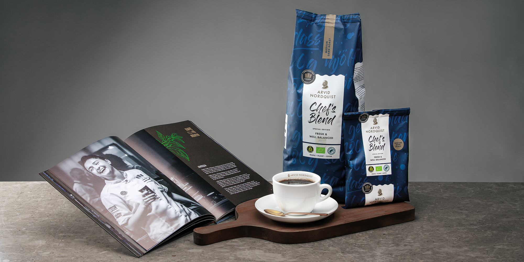 Kocklandslaget inspirerar till mer kaffe oavsett om det är i koppen eller kaffe på menyn. Kaffe är en viktig ingrediens på de flesta restauranger, caféer och på jobbet. Men det handlar om så mycket mer än bara en slät kopp. I detta samarbete så har även en unik produkt utvecklats. Chef’s Blend är speciellt framtagen av Arvid Nordquist tillsammans med Svenska Kocklandslaget. Att unna sig en kaffe blir en stund av njutning, en möjlighet att stanna upp och samla på energidepåerna. Låt din verksamhet symbolisera hantverk i hela ledet – från inköp till serverad slutprodukt.