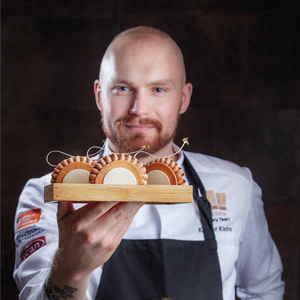 Kasper Kleihs tituleras Head Pastry Chef – både för Svenska Kocklandslaget och på Restaurant Étoile där han till vardags arbetar med andra prisbelönta kockar. Han har bland annat vunnit guld med Svenska Kocklandslaget i Culinary World Cup 2018, årets konditor 2021, tagit en förstaplacering i Global Pastry Europe 2019, och kammat hem guld i Culinary Olympics med Svenska Juniorkocklandslaget 2016. – Kaffe är en smak jag plockar upp med jämna mellanrum. Jag älskar ju kaffe i och till desserter, så det kändes rätt naturligt när jag fick frågan att medverka.