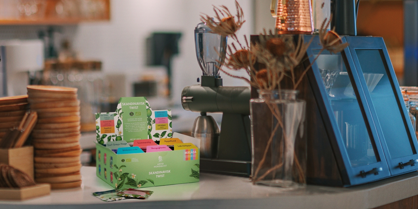 Te med hög kvalité i ett ekologiskt helhetskoncept med svart-, grönt, rött- och ört-te.