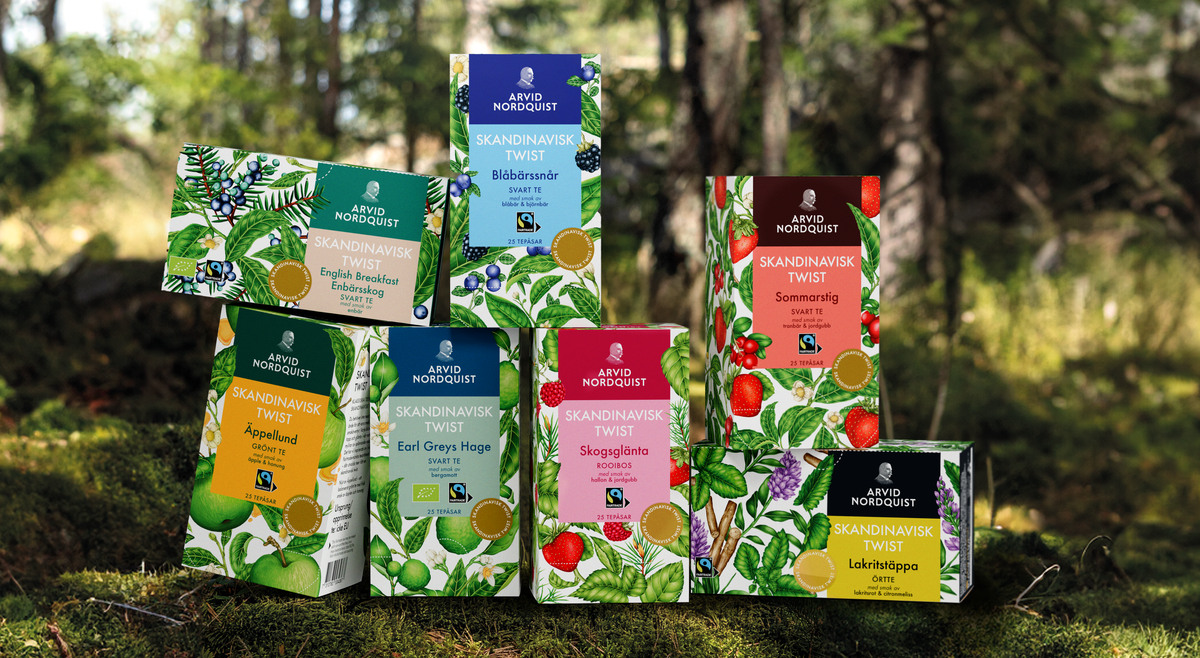 Du behöver inte resa till världens ände för att vara med om ett smakäventyr. Varje bäck, fjälltopp och glänta i vår natur myllrar av spännande smaker. Det har vi inspirerats av i vårt tesortiment – där utvalda teer fått en skandinavisk twist.