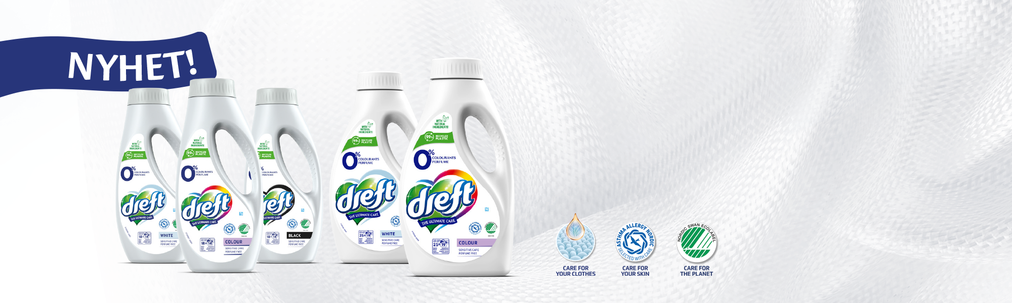 Dreft tvättmedel lanserades 1948 i Belgien och 1957 i Nederländerna och är på flera marknader etablerat som nummer ett inom skonsamma tvättmedel. En stark orsak till Drefts popularitet är just att tvättmedlet är mycket skonsamt inom tre viktiga områden; skonsamt för dina kläder, skonsamt för huden och skonsamt för miljön. Vi kallar Drefts egenskaper för "The ultimate care", då inget annat tvättmedel på marknaden är lika skonsamt inräknat samtliga tre kategorierna.