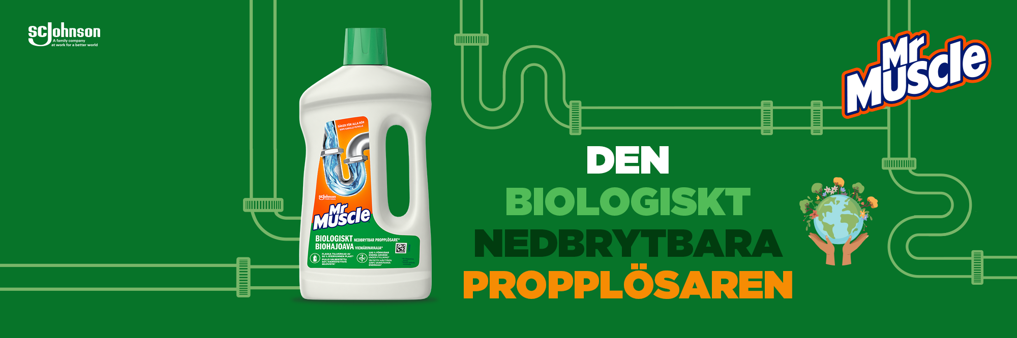 Mr Muscle propplösare för trögt rinnande avlopp är biologiskt nedbrytbar. Effektiv mot proppar, men skonsam mot miljön - helt enkelt!