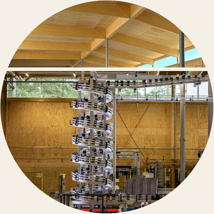 Trä är en förnybar råvara som binder koldioxid, och genom att använda trä för vår nya rosteri- och kontorsbyggnad minskar vi koldioxidutsläppen betydligt. Denna naturliga kollagringsfunktion bibehålls när träet används i exempelvis byggnader.