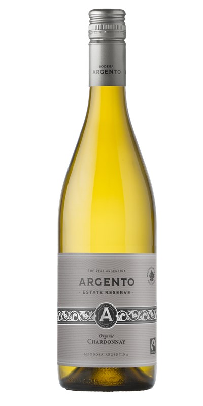 Argento Estate Reserve organic Chardonnay har en fyllig och fruktig smak med komplexa inslag av fat, gula äpplen, ananas, lime och vanilj.